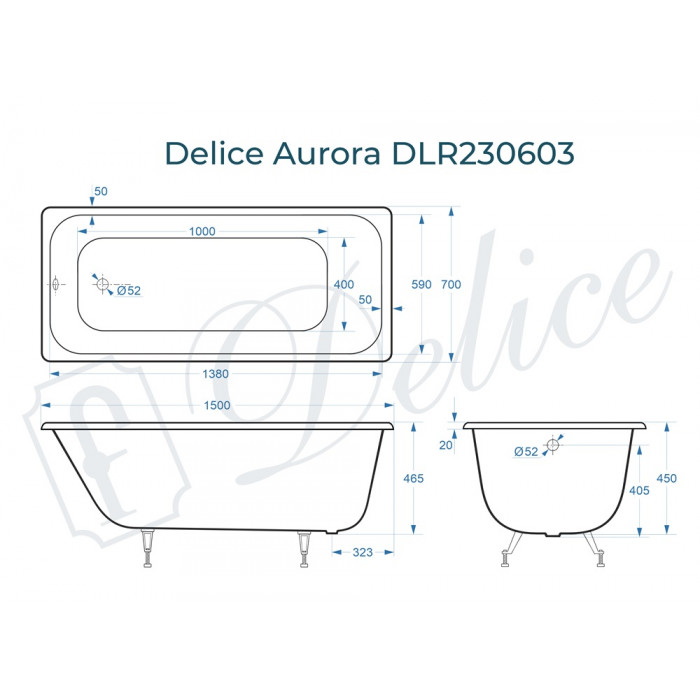 Заказывайте Чугунная ванна Delice France Aurora 150x70 DLR230603 с установкой в день доставки!