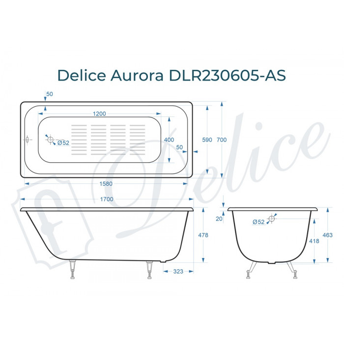 Заказывайте Чугунная ванна Delice France Aurora 170x70 DLR230605-AS с установкой в день доставки!