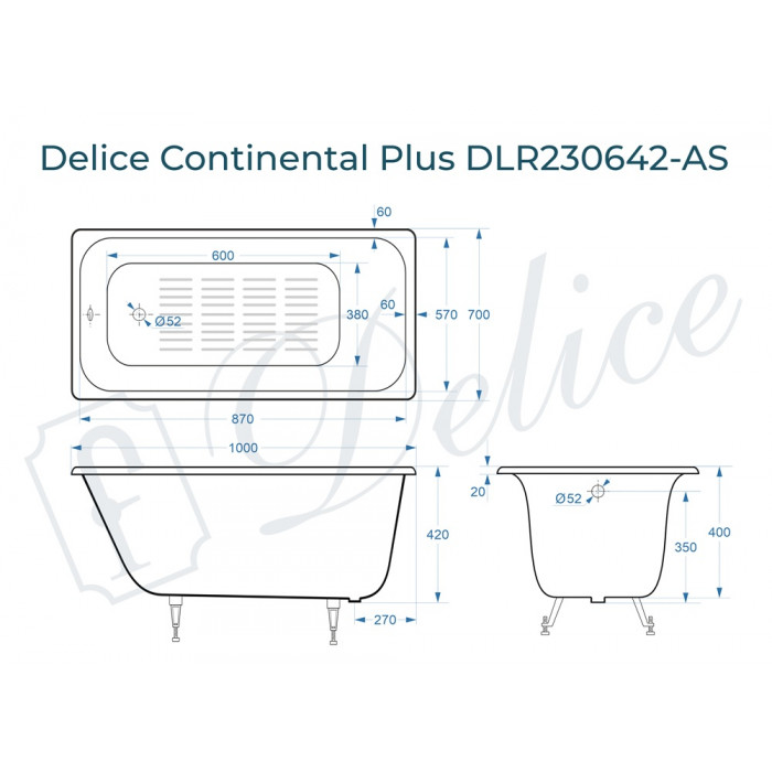Чугунная ванна Delice France Continental PLUS 100х70 DLR230642-AS одна из лучших на рынке моделей.