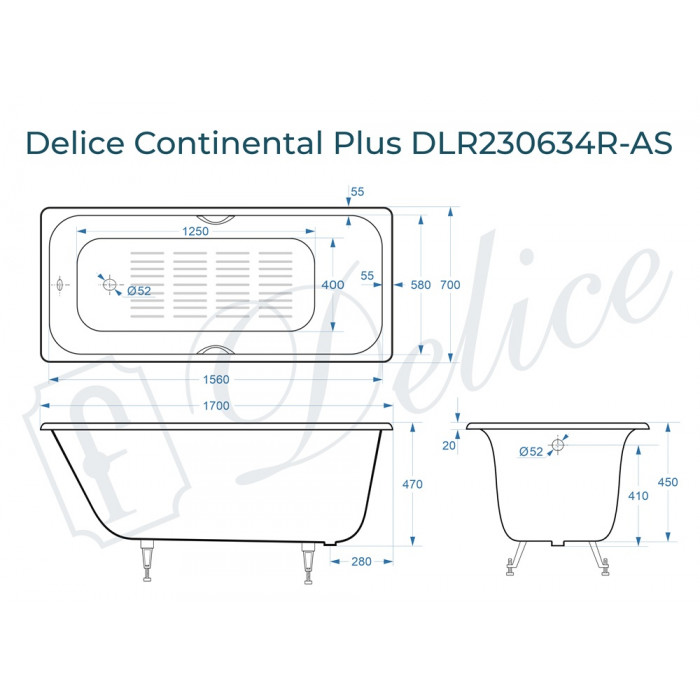 Чугунная ванна Delice France Continental PLUS 170х70 DLR230634R-AS купить с доставкой по Москве и Подмосковью. Условия доставки в разделе «Доставка и оплата».