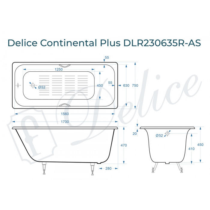 Чугунная ванна Delice France Continental PLUS 170х75 DLR230635R-AS одна из лучших на рынке моделей.