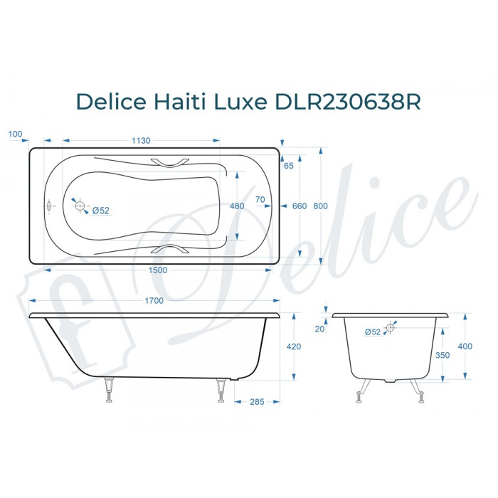 Чугунная ванна Delice France Haiti Luxe 170x80 DLR230638R купить с доставкой по Москве и Подмосковью.