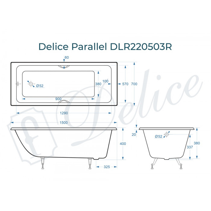 Заказывайте Чугунная ванна Delice France Parallel 150x70 DLR220503RB с установкой в день доставки!