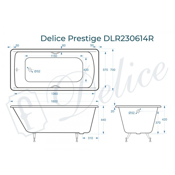 Заказывайте Чугунная ванна Delice France Prestige 160х70 DLR230614R с установкой в день доставки!