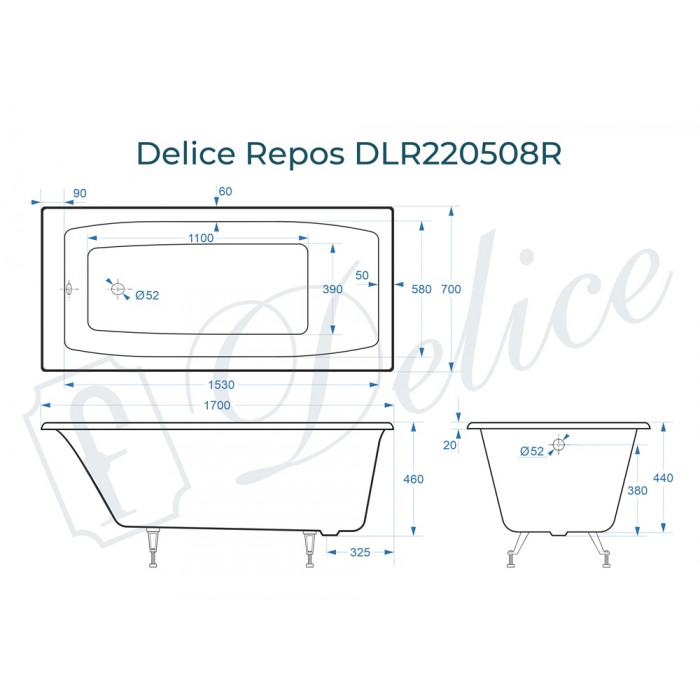 Чугунная ванна Delice France Repos 170x70 DLR220508 купить с доставкой по Москве и Подмосковью.