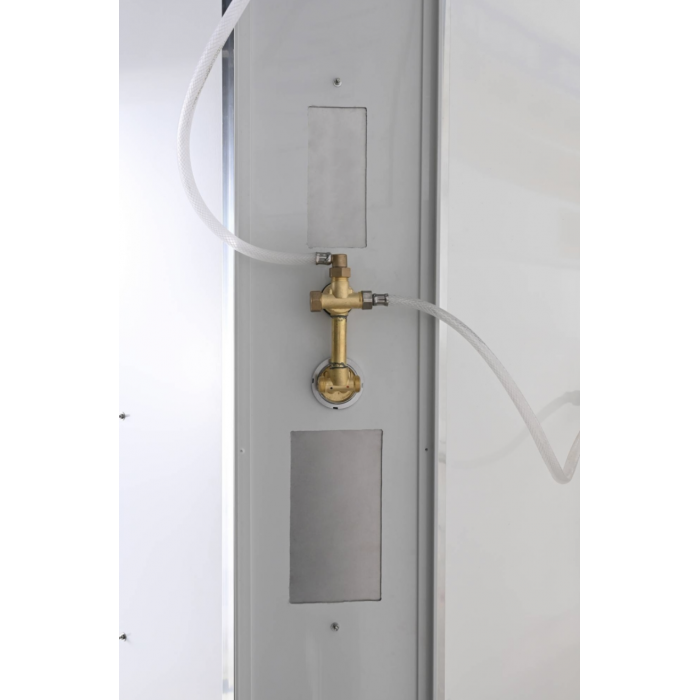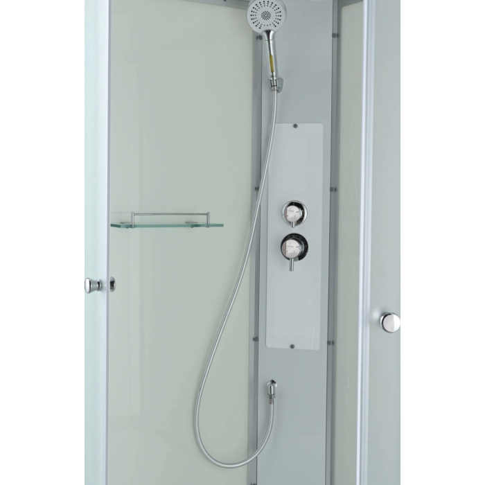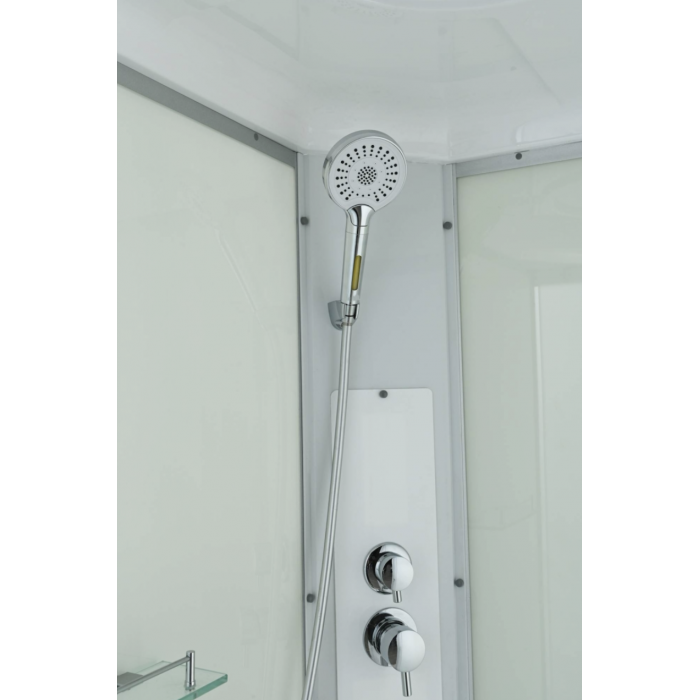 | Оснащение | душевой гарнитур, смеситель, полочка, арома-лейка с витамином С |