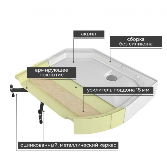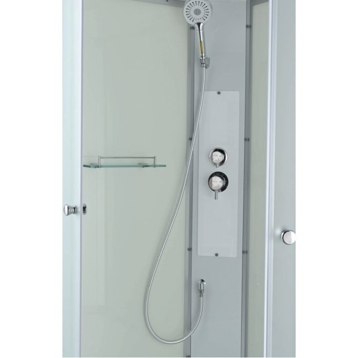 | Оснащение | душевой гарнитур, смеситель, полочка, арома-лейка с витамином С |