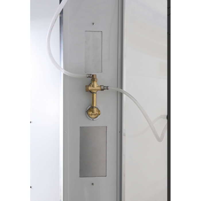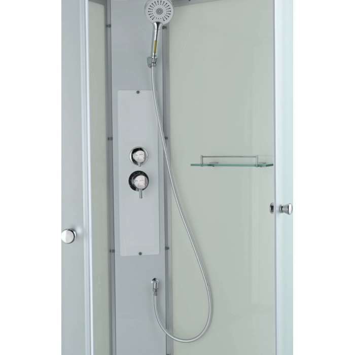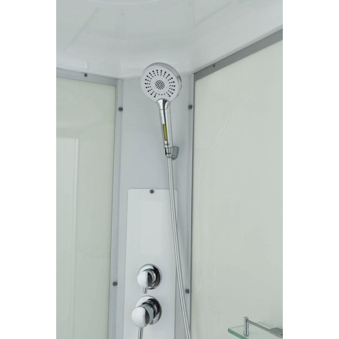 | Оснащение | душевой гарнитур, смеситель, полочка, арома-лейка с витамином С |