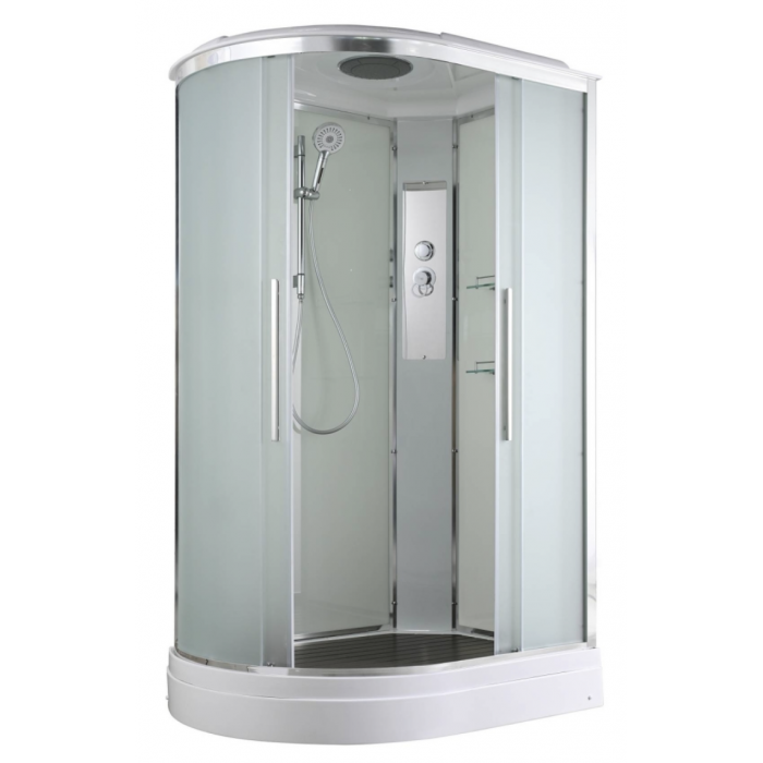 | Оснащение | душевой гарнитур, смеситель, полки, сифон, деревянная вставка в поддон, арома-лейка с витамином С |