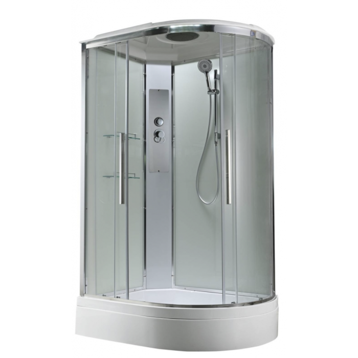 | Оснащение | душевой гарнитур, смеситель, полки, сифон, арома-лейка с витамином С |