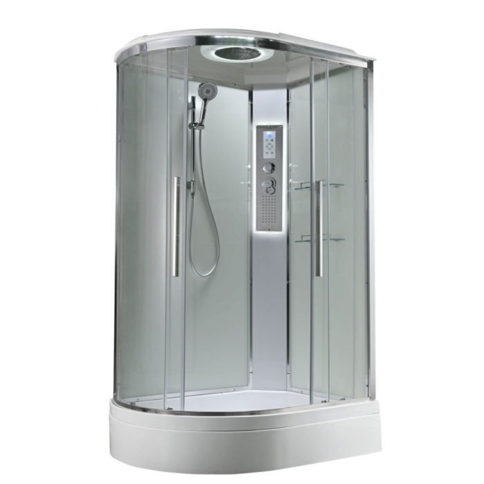 | Оснащение | душевой гарнитур, смеситель, полки, сифон, арома-лейка с витамином С |