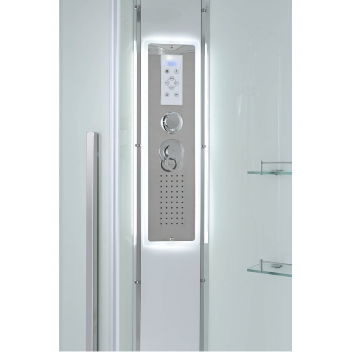 | Оснащение | душевой гарнитур, смеситель, полки, сифон, арома-лейка с витамином С |