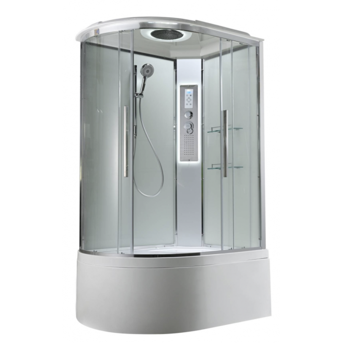 | Оснащение | душевой гарнитур, смеситель, полки, сифон, арома-лейка с витамином С |