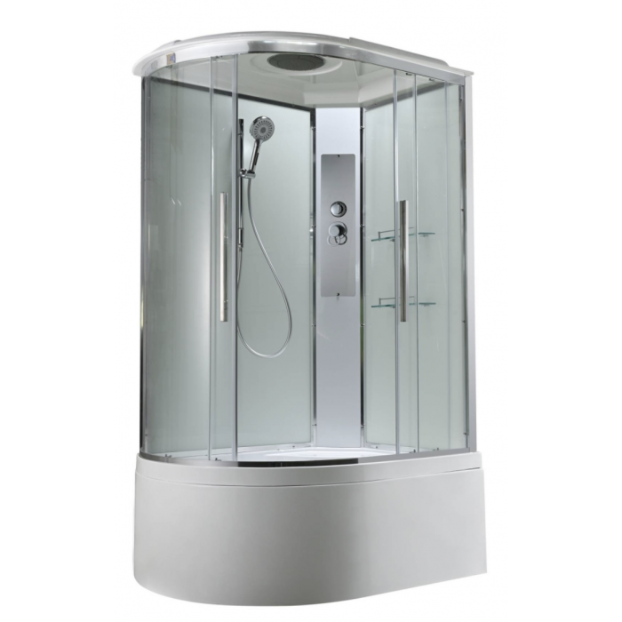 | Оснащение | душевой гарнитур, смеситель, полки, сифон, арома-лейка с витамином С |