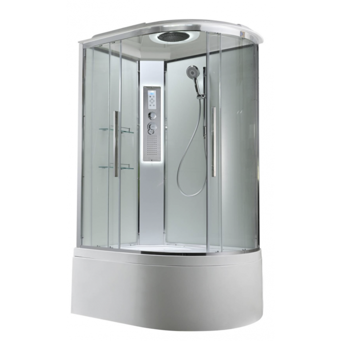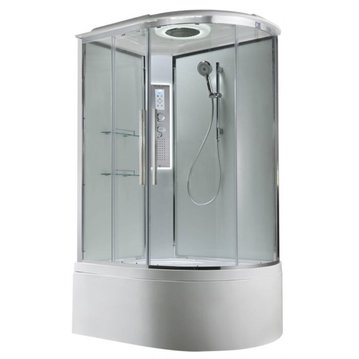 | Оснащение | душевой гарнитур, смеситель, полки, сифон, арома-лейка с витамином С |