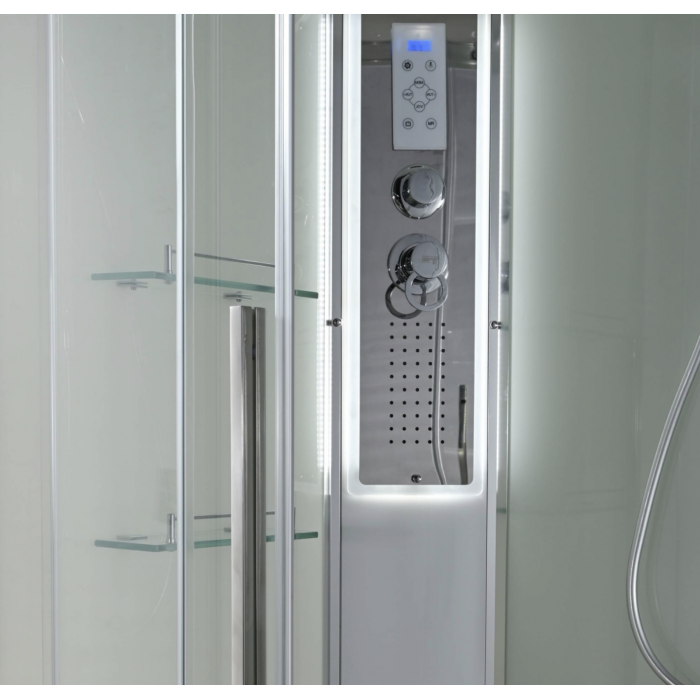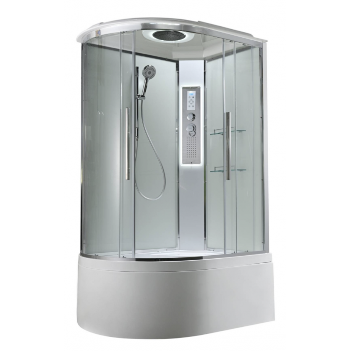 | Оснащение | душевой гарнитур, смеситель, полки, сифон, арома-лейка с витамином С |