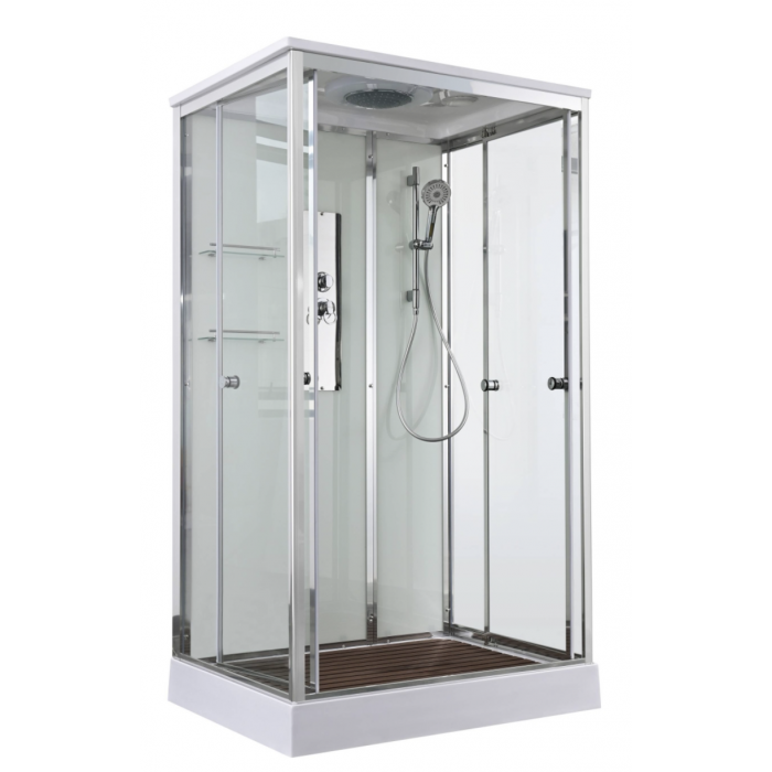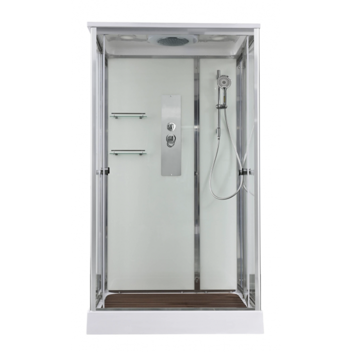 | Оснащение | душевой гарнитур, полки, сифон, деревянная вставка в поддон, арома-лейка с витамином С |