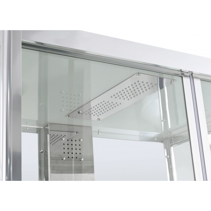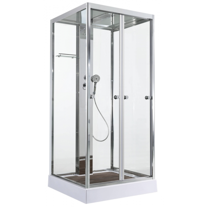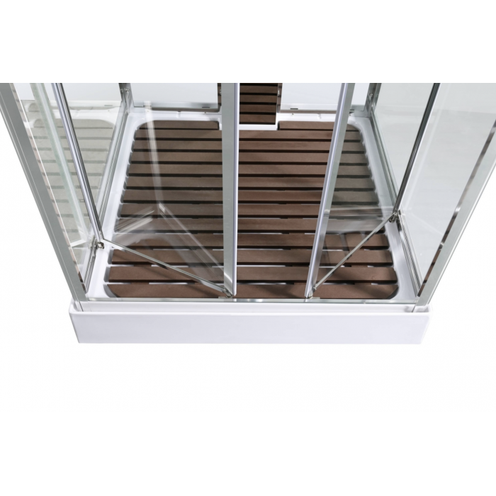 | Оснащение | душевой гарнитур, полки, сифон, деревянная вставка в поддон, арома-лейка с витамином С |