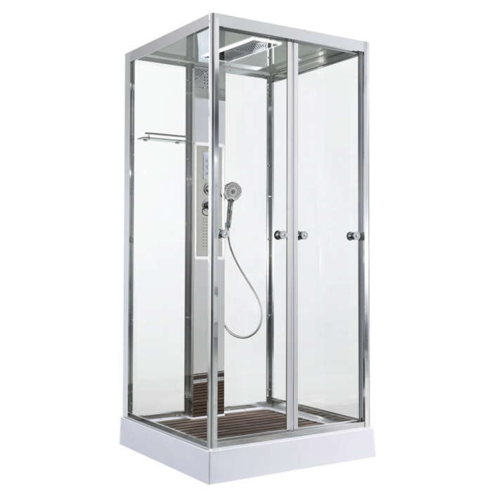 | Оснащение | душевой гарнитур, полки, сифон, деревянная вставка в поддон, арома-лейка с витамином С |