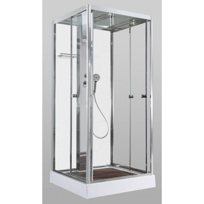 | Оснащение | душевой гарнитур, полки, сифон, деревянная вставка в поддон, арома-лейка с витамином С |