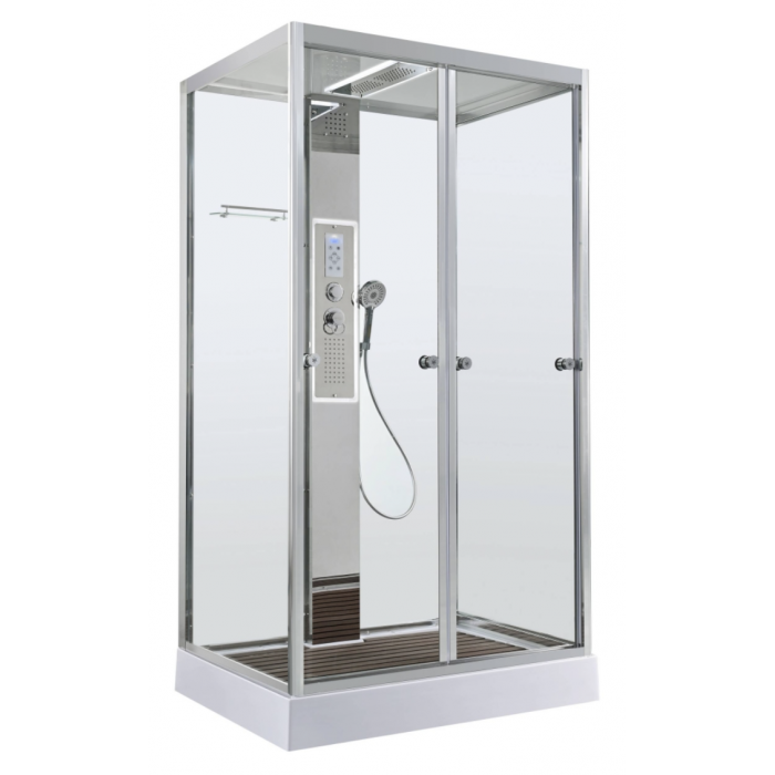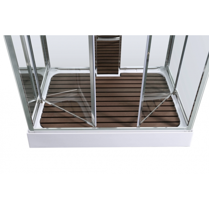 | Оснащение | душевой гарнитур, полки, сифон, деревянная вставка в поддон, арома-лейка с витамином С |