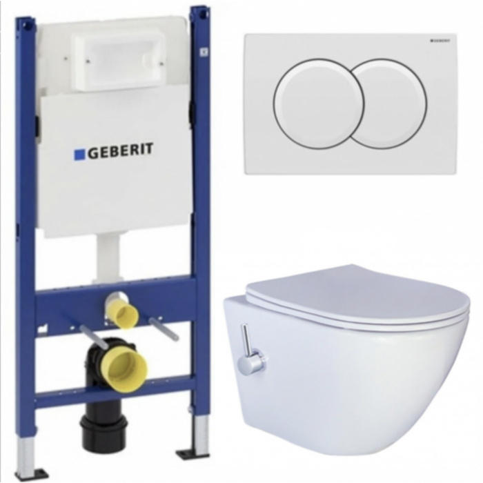 Комплект Система инсталляции Geberit Duofix 111.154.11.1 с кнопкой смыва Delta01 + унитаз Esbano Teruel-WBN безободковый с функцией биде купить с доставкой по Москве и Подмосковью.