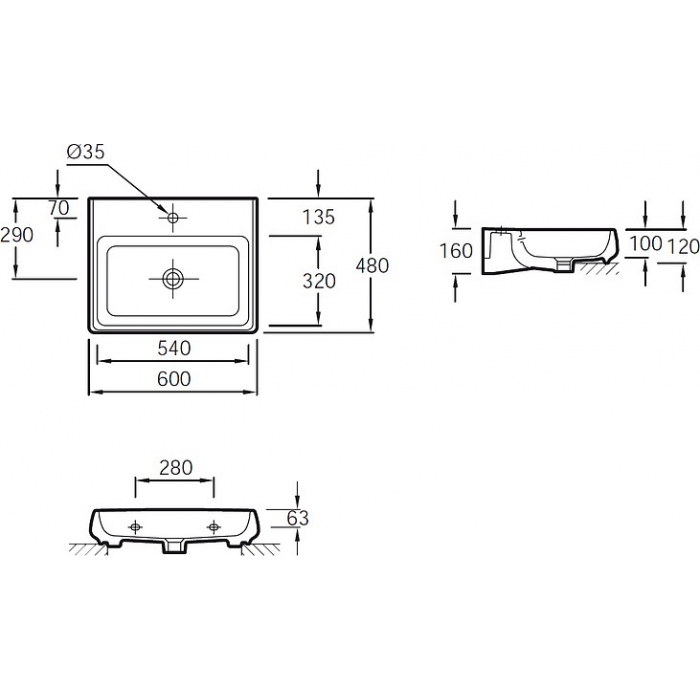 Тип раковины | полувстраиваемая, встраиваемая сверху, подвесная |