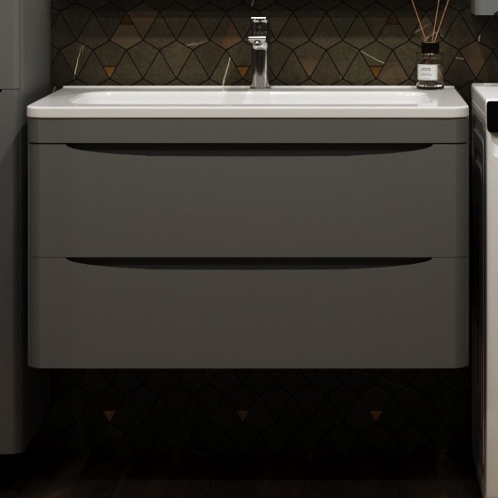 Тумба с раковиной Style Line Бергамо Мини 90 Люкс Plus подвесная, антискрейтч серая