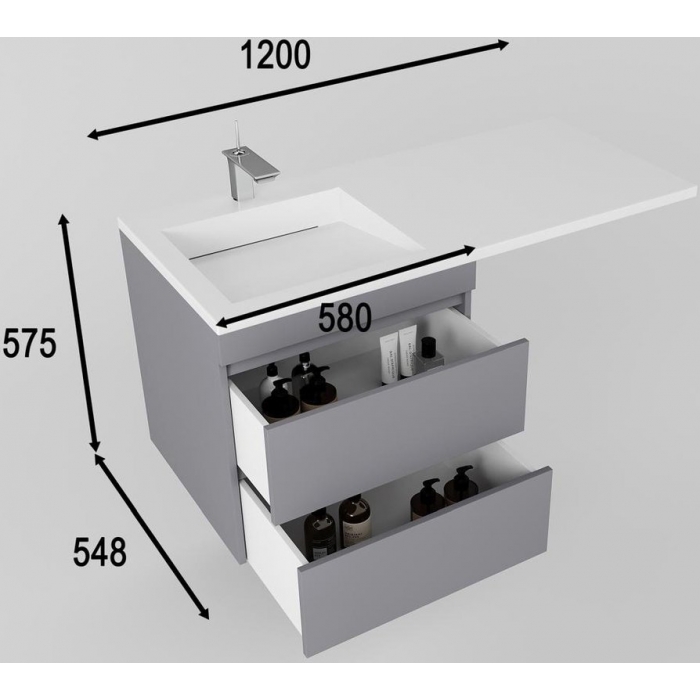 Тумба с раковиной Style Line Даллас 120 R Люкс Plus подвесная, серая