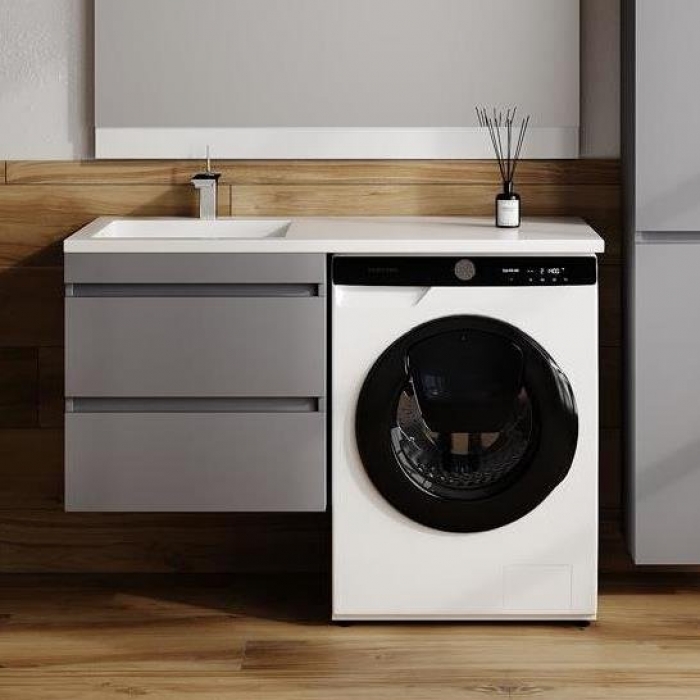 Тумба с раковиной Style Line Даллас Леон 120 L Люкс Plus подвесная, серая купить с доставкой по Москве и Подмосковью.