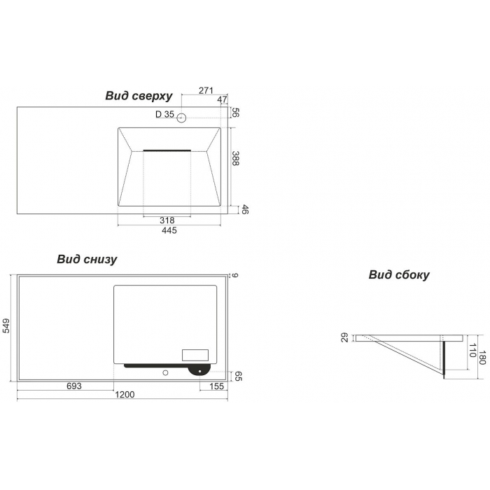 | Отверстия под смеситель | на 1 отверстие |