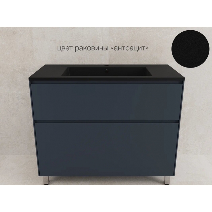 Тумба с раковиной Style Line Лима 100 напольная, 2 ящика, графит