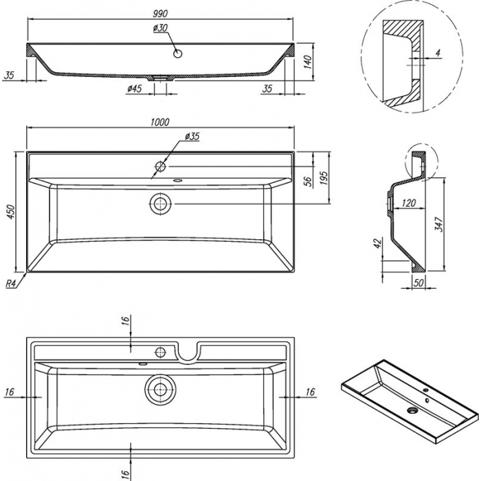 | Форма раковины | прямоугольная |