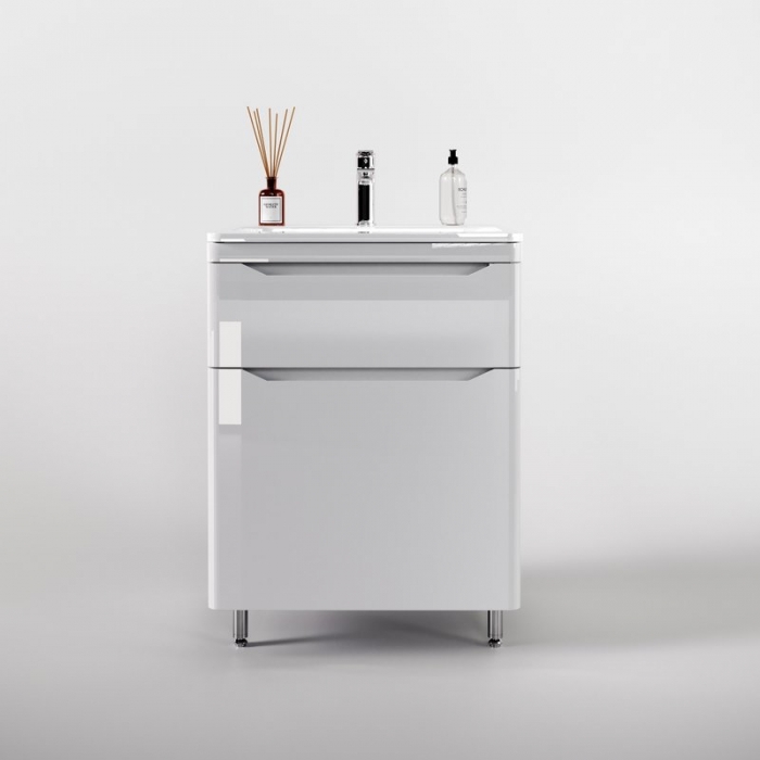 Тумба с раковиной Style Line Марелла 60 напольная, белый глянец купить с доставкой по Москве и Подмосковью.