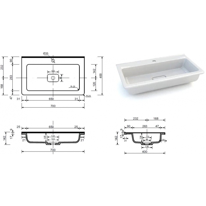 | Форма раковины | прямоугольная |