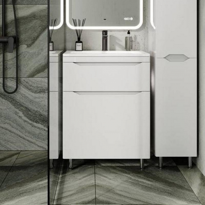 Тумба с раковиной Style Line Марелла 70 напольная, белый глянец купить с доставкой по Москве и Подмосковью.