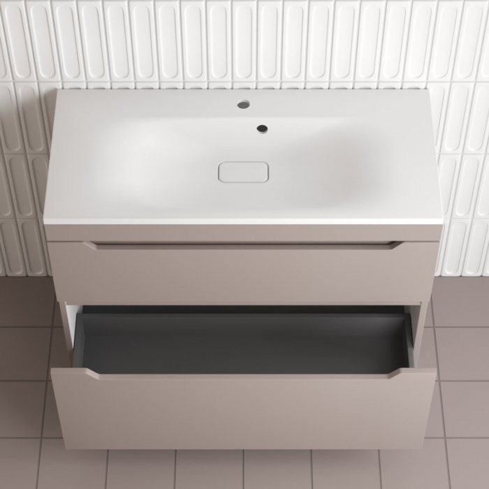 Тумба с раковиной Style Line Остин 100 напольная, тауп темный эмаль plus, раковина Фортуна 100 жасмин