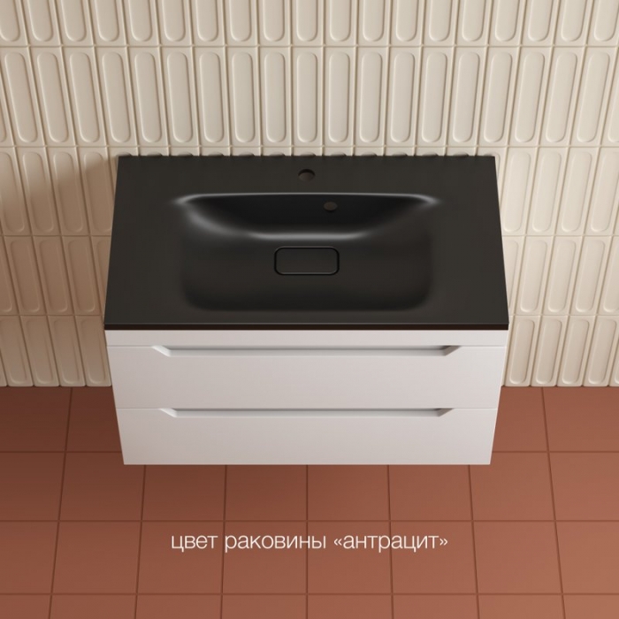 Тумба с раковиной Style Line Остин 80 подвесная, белая эмаль plus, раковина Фортуна 80 антрацит купить с доставкой по Москве и Подмосковью.