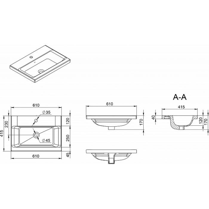 | Форма раковины | прямоугольная |
