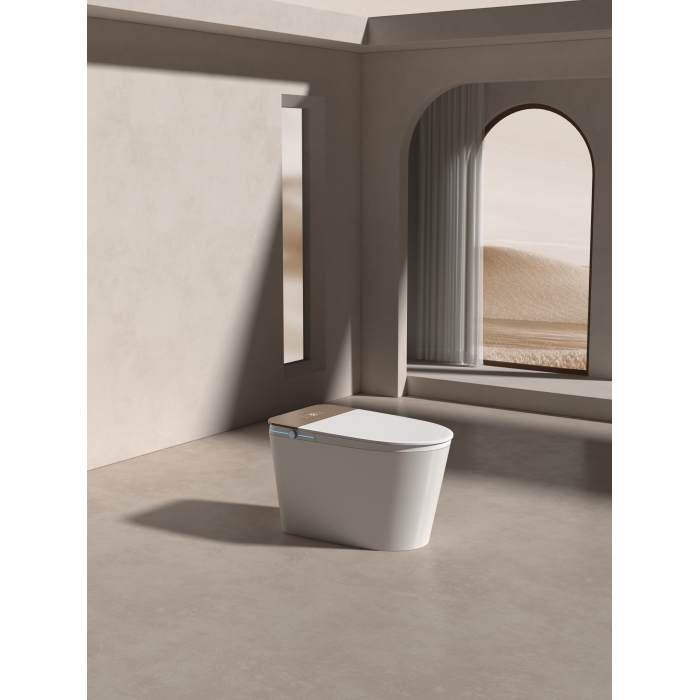 | Оснащение | пульт ДУ, водонагреватель для подогрева воды для биде, сенсор, регистрирующий присутствие человека для активации определенных функций унитаза, сенсор поднятия верхней крышки при подходе, педаль для поднятия и опускания сиденья и ободка при подходе, подсветка чаши унитазы, внешняя ночная подсветка, шировой кран для подключения, электрический шнур с УЗО |