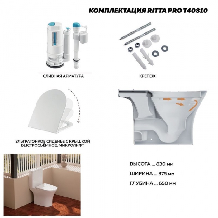 Мы предлагаем широкий ассортимент сантехники для дома и офиса. Унитаз-компакт Teymi Ritta Pro T40810 безободковый купить со скидкой в нашем интернет-магазине Vanna-Store.ru и забрать самовывозом в Москве.