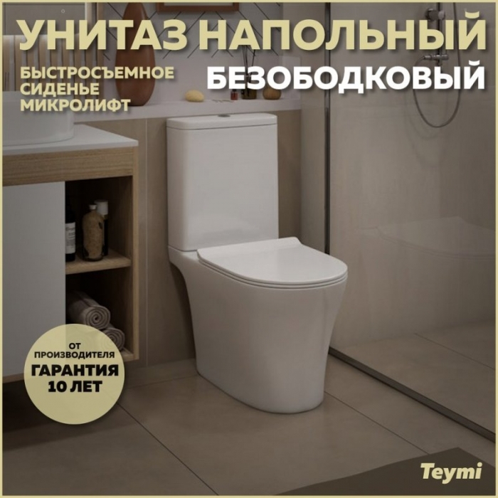 Заказывайте Унитаз-компакт Teymi Ritta Pro T40810 безободковый с установкой в день доставки!