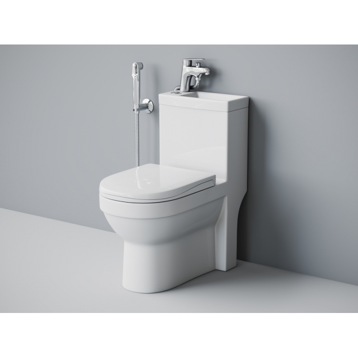 Унитаз-моноблок Laguraty 8074A с раковиной и гигиеническим душем купить с доставкой по Москве и Подмосковью.
