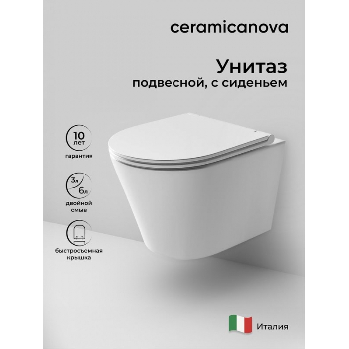 Унитаз подвесной Ceramica Nova Forma CN3011 безободковый купить с доставкой по Москве и Подмосковью.