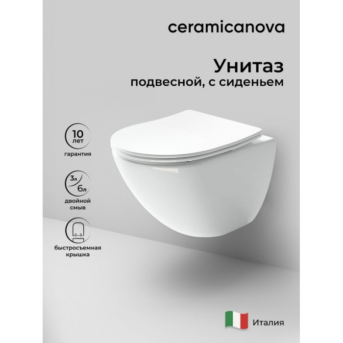 Унитаз подвесной Ceramica Nova Mono CN1905 безободковый купить с доставкой по Москве и Подмосковью.