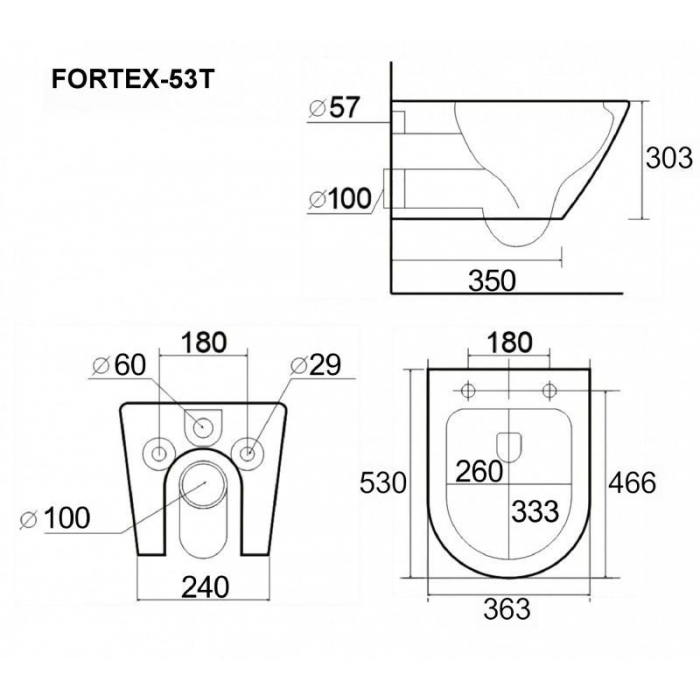 Унитаз подвесной Esbano Fortex-53T, смыв Торнадо