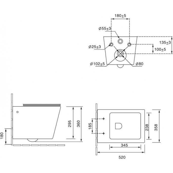 Унитаз подвесной SantiLine SL-5007 безободковый