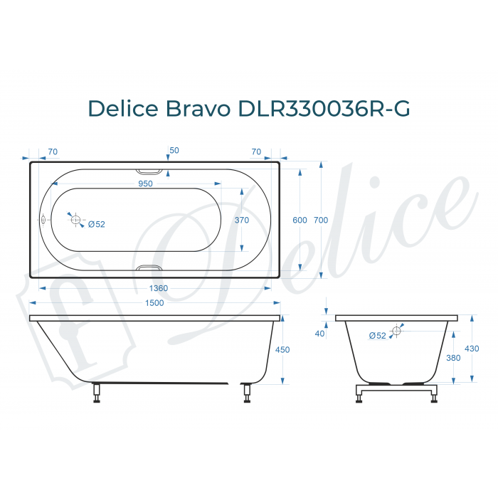 Ванна из литьевого мрамора Delice France Bravo 150х70 DLR330036R-G ручки хром одна из лучших на рынке моделей.