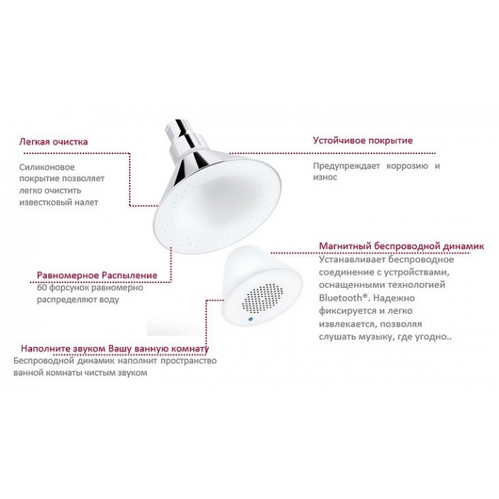 Верхний душ Jacob Delafon Moxie 9245D-CP с беспроводным Bluetooth динамиком купить с доставкой по Москве и Подмосковью.
